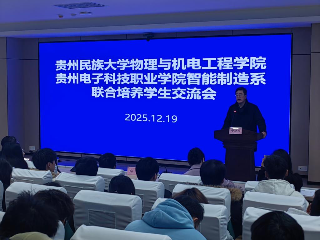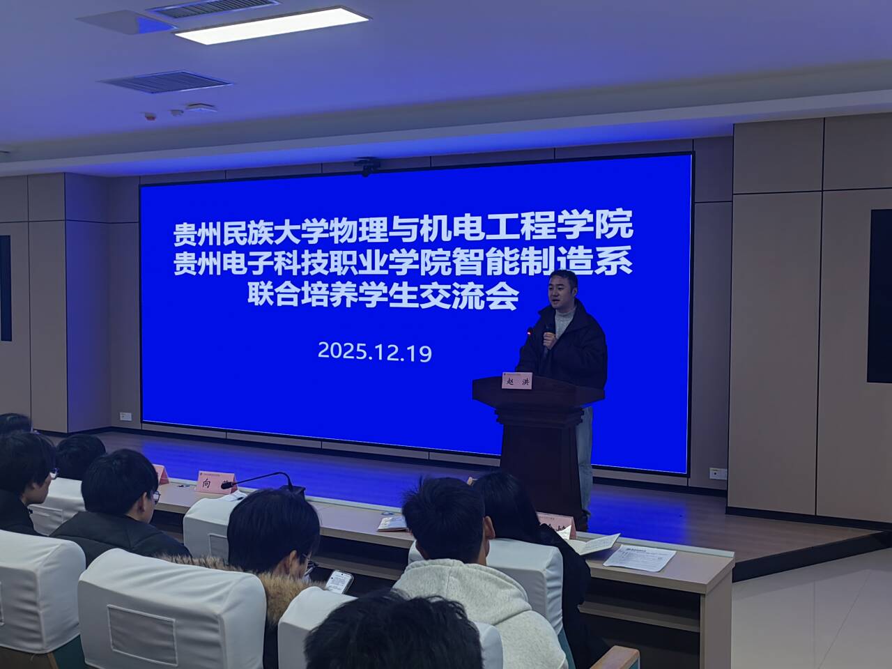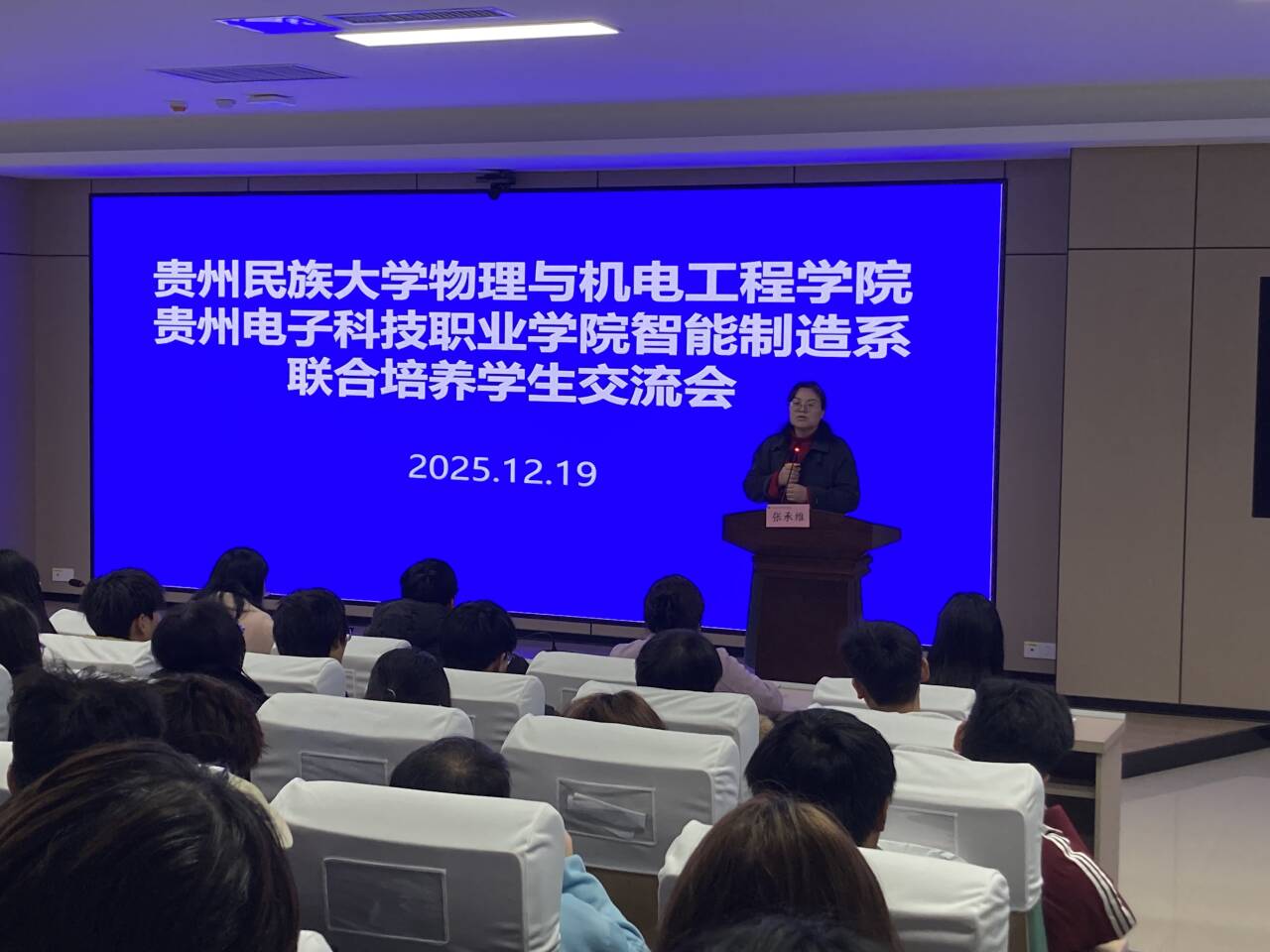 与贵州电子科技职业学院智能制造系在贵州电子科技职业学院凌飞坊四楼报告厅,联合举办自动化(专升本)联合培养学生座谈交流会。会议由贵州电子科技职业学院智能制造系党总支副书记、教工党支部书记何金焕主持, 色色