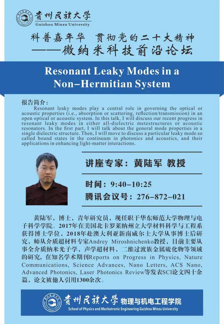 [报告]黄陆军教授-Resonant Leaky Modes in a Non-Hermitian System