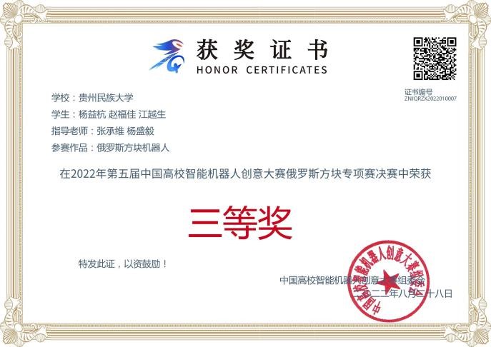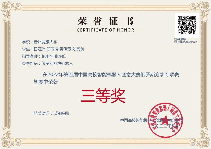 近期,第五届中国高校智能机器人创意大赛俄罗斯方块专项赛决赛在浙江余姚举行, 色色 色色 学子线上参加该项赛事,在比赛中表现优异,荣获全国“三等奖”。