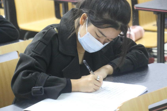 19点整,竞赛正式开始,每一位同学都认真作答,笔尖下跃动的是文字,激荡的却是同学们的赤子之情。