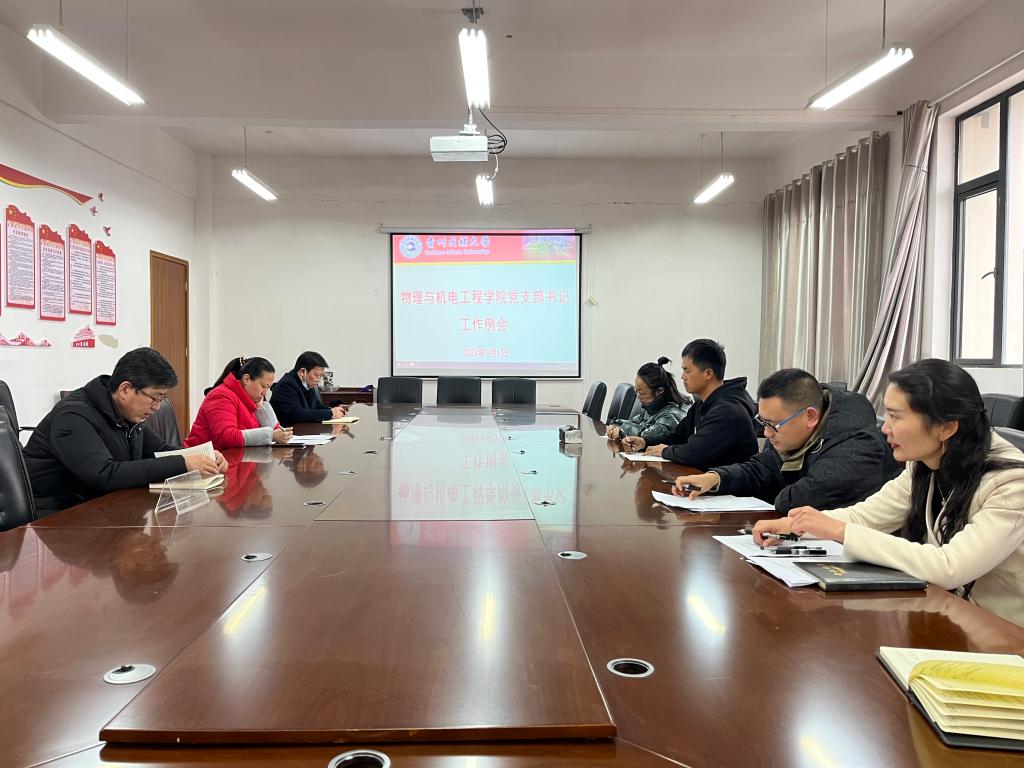 在A7-418会议室召开第一季度党支部书记工作例会,学院党委班子成员、组织员和各支部书记、副书记参加会议。会议由学院党委书记王燕妮主持。