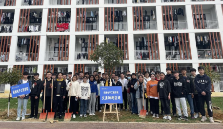 朝气勃发的学子们在大学城校区参加义务植树活动。校党委副书记张鹏程与广大师生一起为美丽的校园增添绿色,种植属于自己的希望之春。